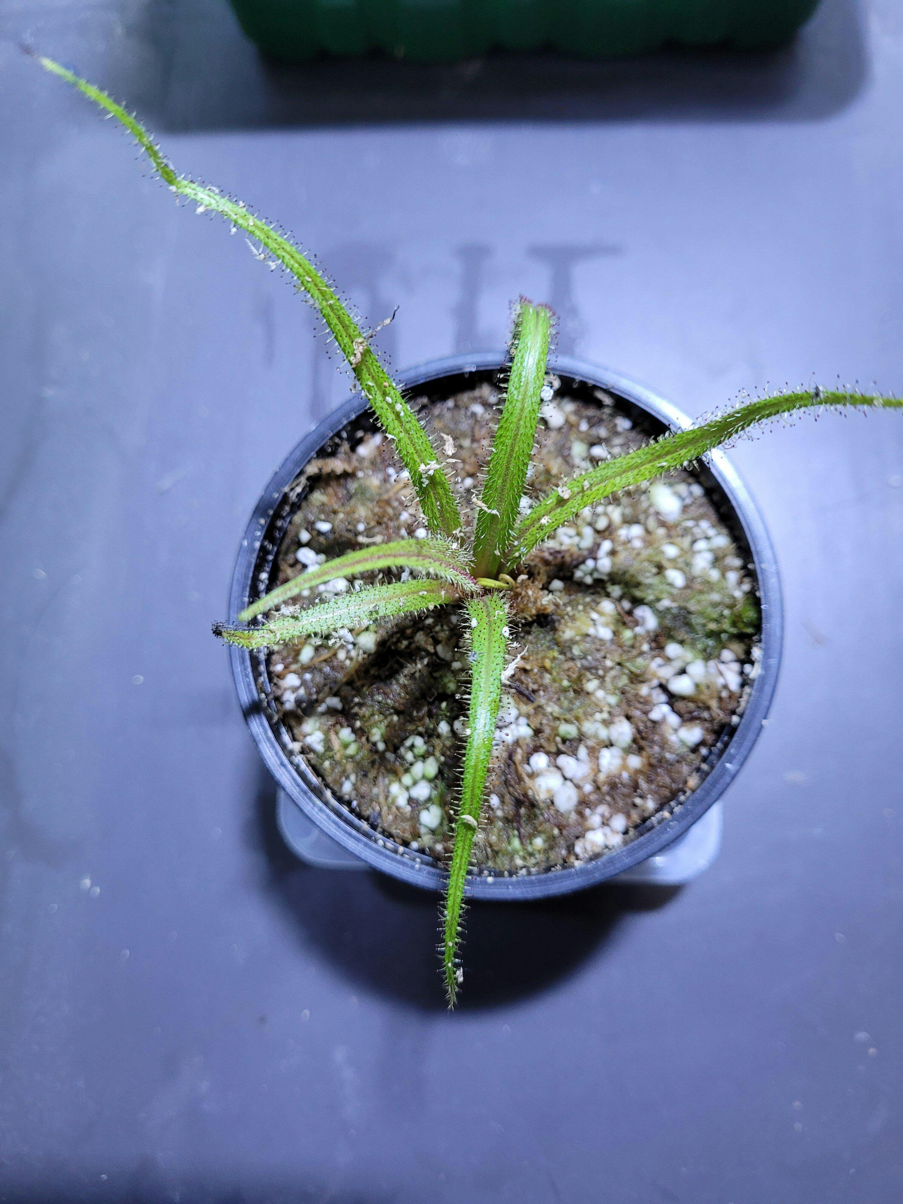 Drosera regia, aptly known as the King Sundew, is one of the largest and most striking sundews in cultivation and is a showstopper in any carnivorous plant collection. Native to a small region in South Africa, this rare species is admired for its long, sword-like leaves that can reach over 24 inches (60 cm) in length, covered in glistening tentacles that can even trap larger insects like moths.